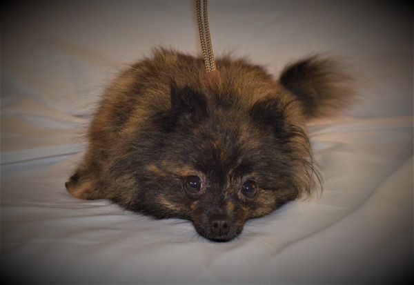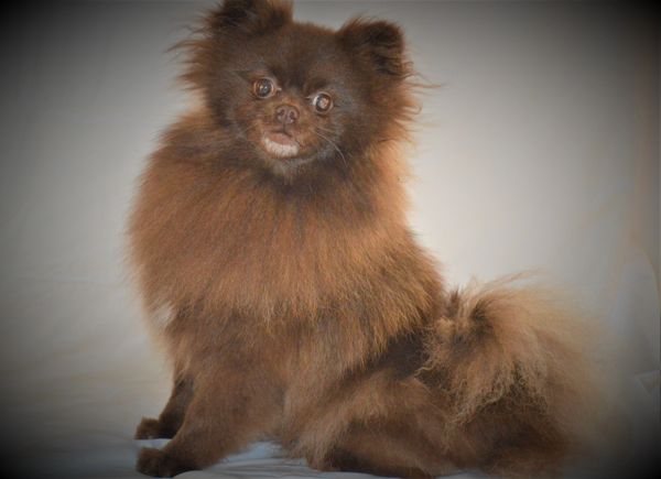 Lula is the largest of our group, coming in at almost 5 lbs. She has a mostly chocolate coat with a small patch of white on her chest and chin. Lula has a huge fluffy coat which she enjoys being brushed in our laps. She has become the "alpha" girl and trys to keep everyone in line.